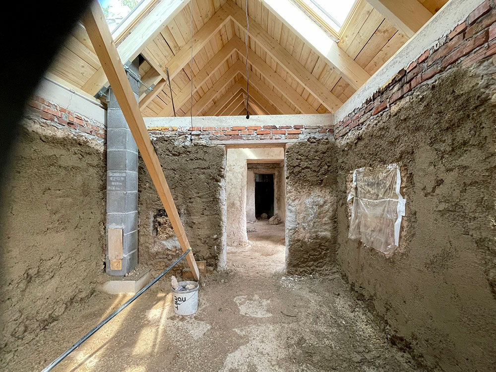 Ein über 300 Jahre altes kleines Gebäude des Hofes wird ökologisch und mit natürlichen Materialien wie Lehm, Kalk und Holz zu einem Knotenpunkt von Bauernhof, Montessori-Einrichtung und Dorf umgestaltet: Ein Verkaufsraum und Verarbeitungsstätte sind am entstehen. Ein Ort der Begegnung und des Austausches.